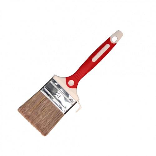 Кисть используется для нанесения лакокрасочных материалов различного типа на подготовленную поверхность. Щетина изготовлена из смешанной щетины, которая удерживает краску или аналогичный отделочный материал и не дает стекать с кисти. Рукоятка выполнена из бикомпонентного материала.
