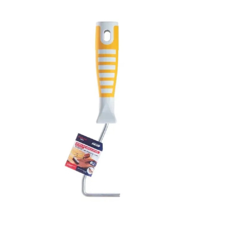 Бюгель Акор Профи 636 30 075, 6х50-75 мм, рукоятка для мини-ролика малярного, длина 30 см - это металлический изогнутый элемент для мини-роликов, который предназначен для крепления ролика малярного валика. Данная модель подходит для валиков с диаметром втулки 6 мм и шириной рабочей части 50–75 мм, что делает её универсальным решением для покраски узких поверхностей, углов, плинтусов и других труднодоступных мест. Применение достаточно широкое: покраска оконных рам, дверей, радиаторов; обработка углов, стыков, декоративных элементов; нанесение лаков, грунтовок, красок на водной и масляной основе. Эргономичная форма снижает усталость руки. Подходит как для профессионалов, так и для домашнего ремонта.