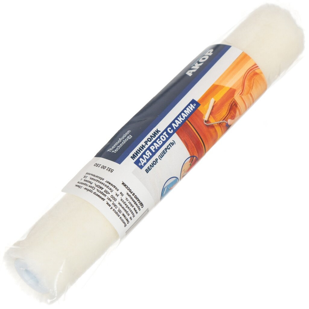 Мини-ролик малярный Акор 551 00 150 для работ с лаками, длина 150 мм, ворс велюр - профессиональный инструмент для безупречного глянцевого покрытия.