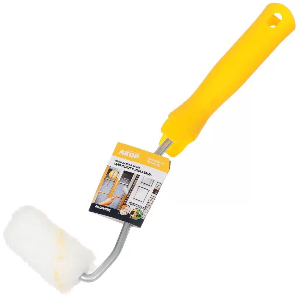 Мини-валик малярный Акор 502 30 60 Для работ с эмалями, ролик 60 мм, ворс полиамид