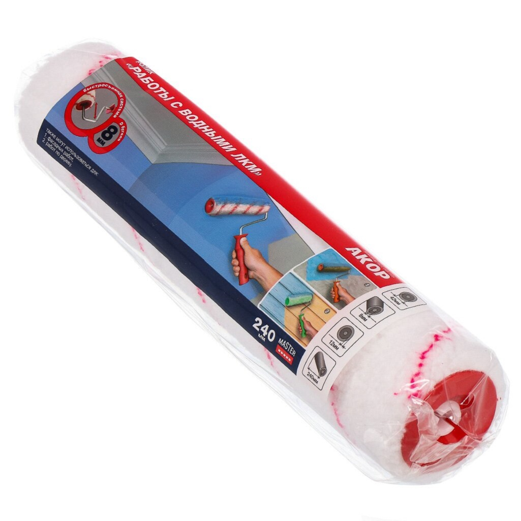 Ролик малярный Акор Мастер 733 42 024 для работ с водными красками, длина 240 мм, ворс полиамид