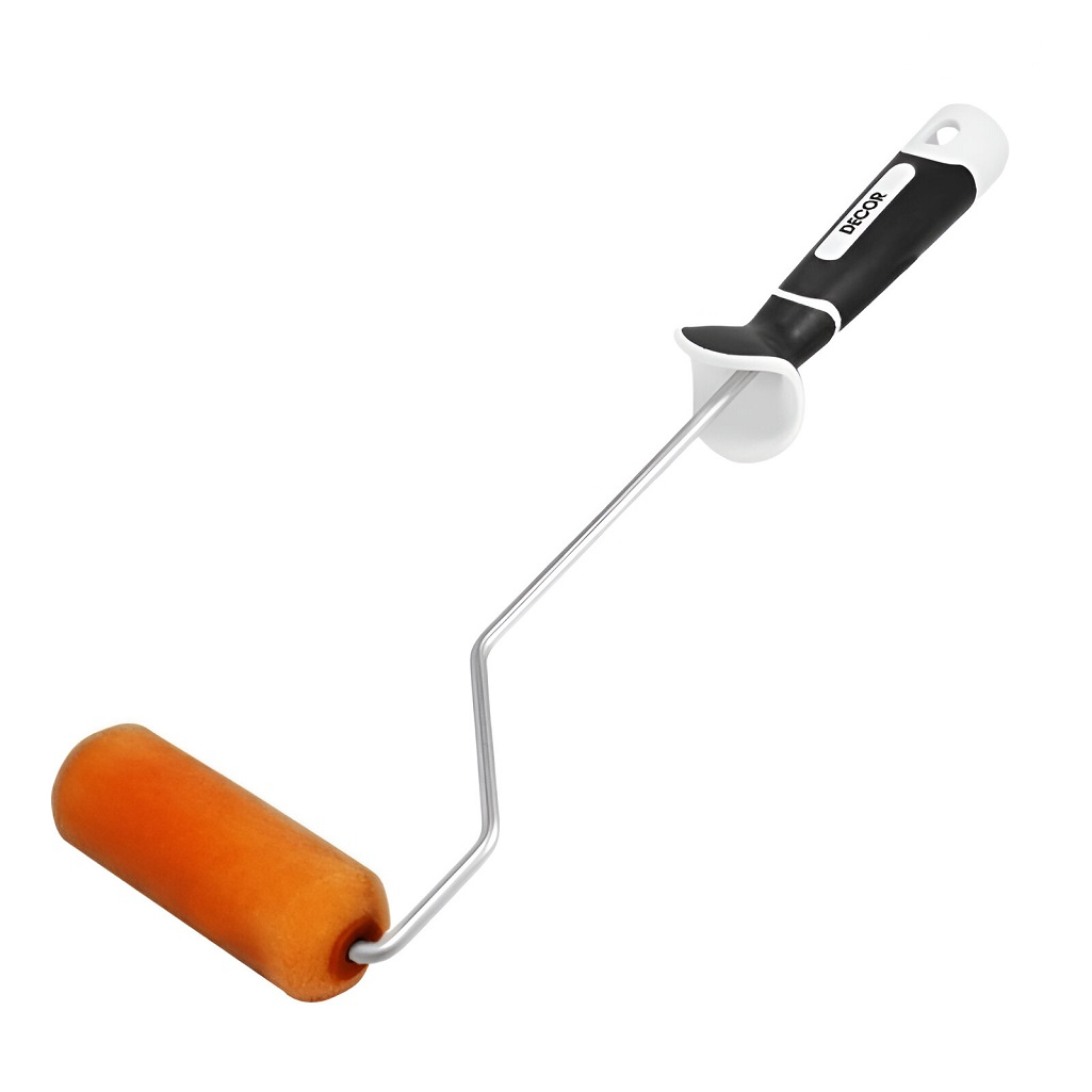 Мини-валик малярный DECOR Black White 909-8110, ролик 100 мм, флокированный поролон делает равномерное нанесение без пузырьков на ровных поверхностях. Флокированный поролон - экстрамелкий поролон, он равномерно распределяет ЛКМ по окрашиваемой поверхности. Ролик легко отмывается от ЛКМ, а прорезиненная ручка предотвращает скольжение в руке во время работы. Инструмент оснащен противоскользящим упором для пальца и чашей для сбора краски на рукоятке. Оцинкованный бюгель диаметром 6 мм.