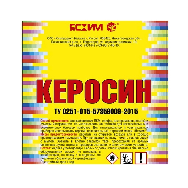 Технические характеристики Керосин ЯСХИМ 0,5л