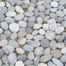 Отобранный по цвету вручную плоский булыжник серой расцветки.