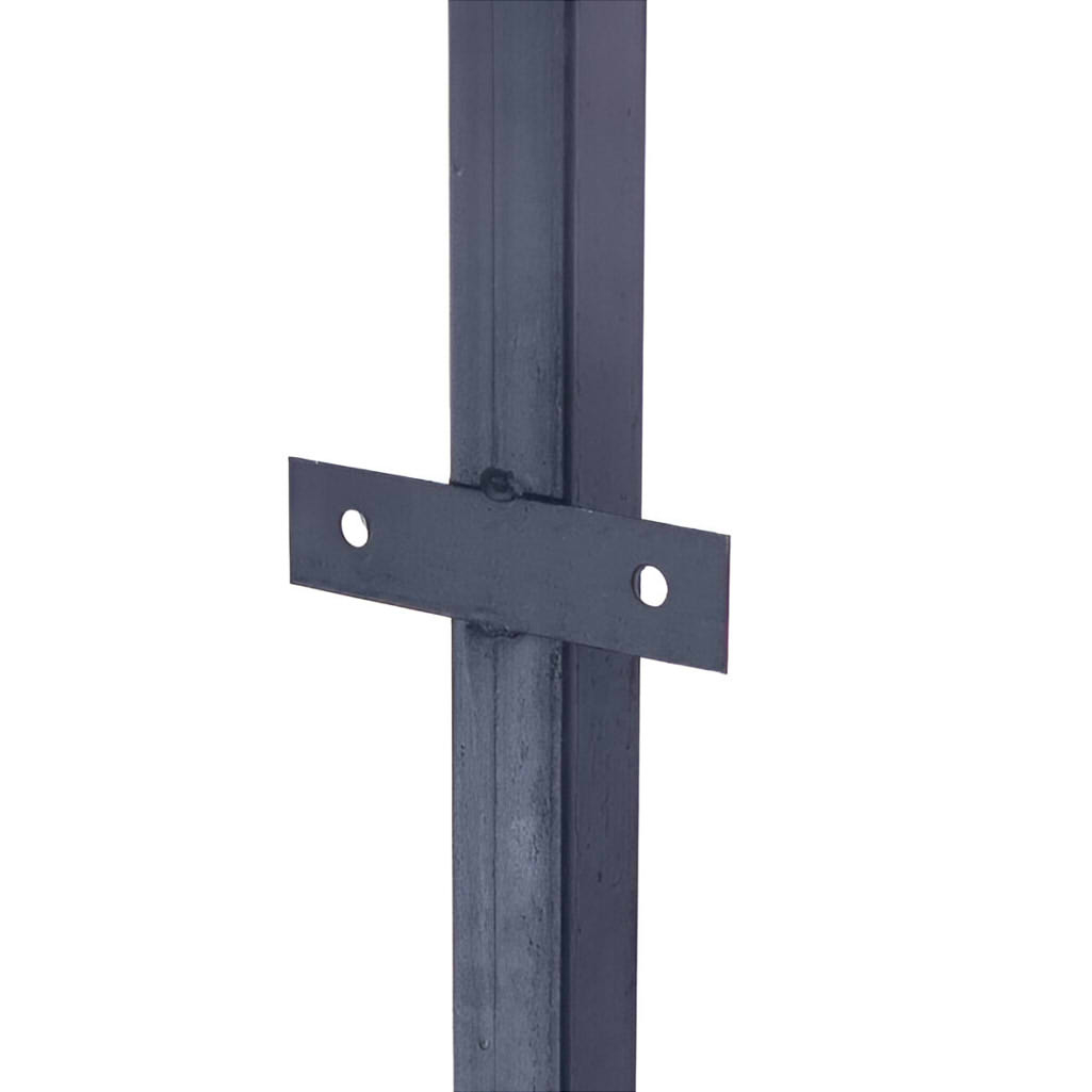- На столбе предусмотрены специальные планки ('уши') для удобного крепления сварной сетки или сетки рабицы, что облегчает процесс установки и обеспечивает надежное крепление забора.