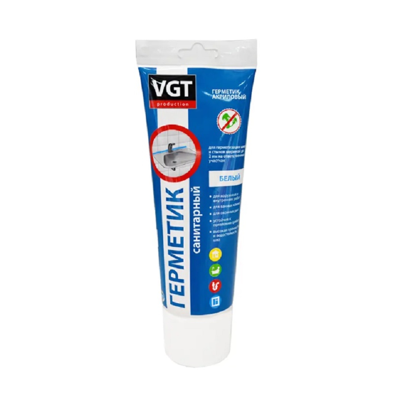 Герметик VGT акриловый, санитарный, прозрачный 280 г предназначен для уплотнения и герметизации швов и стыков при строительных, ремонтных и монтажных работах в помещениях с высокой влажностью (в ванных комнатах, душевых, кухнях и т.д.) между различными материалами (стекло, древесина, керамика, металл, ПВХ). Применяется для внутренних и наружних работ. Не рекомендуется наносить при повышенной влажности и температуре ниже +7°С.