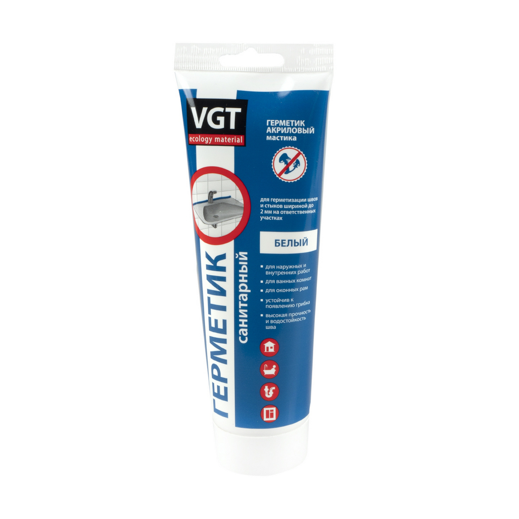 - Герметик VGT санитарный для наружных и внутренних работ, белый, тюбик 350г