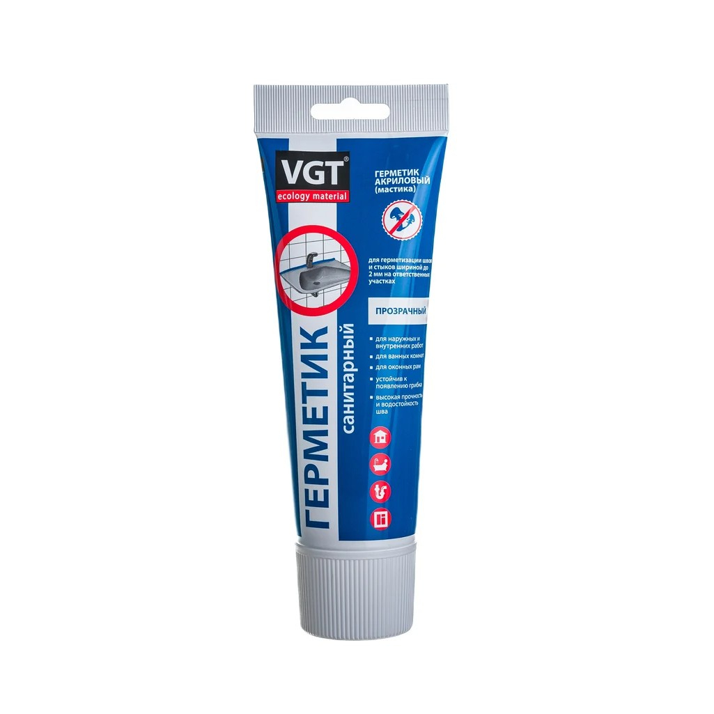 - Герметик VGT санитарный для наружных и внутренних работ, прозрачный 250г тюбик