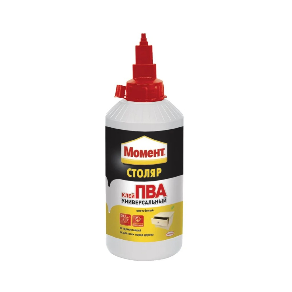 Клей Henkel Момент Столяр Экспресс универсальный, для всех пород дерева, водостойкость, 250 г, предназначен для склеивания всех пород дерева, ДСП, фанеры, шпона, облицовочных материалов, картона и фурнитуры, что делает его незаменимым помощником в различных столярных и ремонтных работах. Этот клей обеспечивает надежное и долговечное соединение материалов, благодаря своей уникальной формуле, которая гарантирует высокую адгезию и прочность. Он обладает водостойкостью, что позволяет использовать его в условиях повышенной влажности без потери качества соединения. Клей быстро сохнет, образуя прочное и эластичное соединение, устойчивое к механическим нагрузкам и воздействию внешних факторов. Henkel Момент Столяр Экспресс является универсальным решением для профессионалов и любителей, обеспечивая высокое качество выполненных работ и долговечность склеенных изделий.