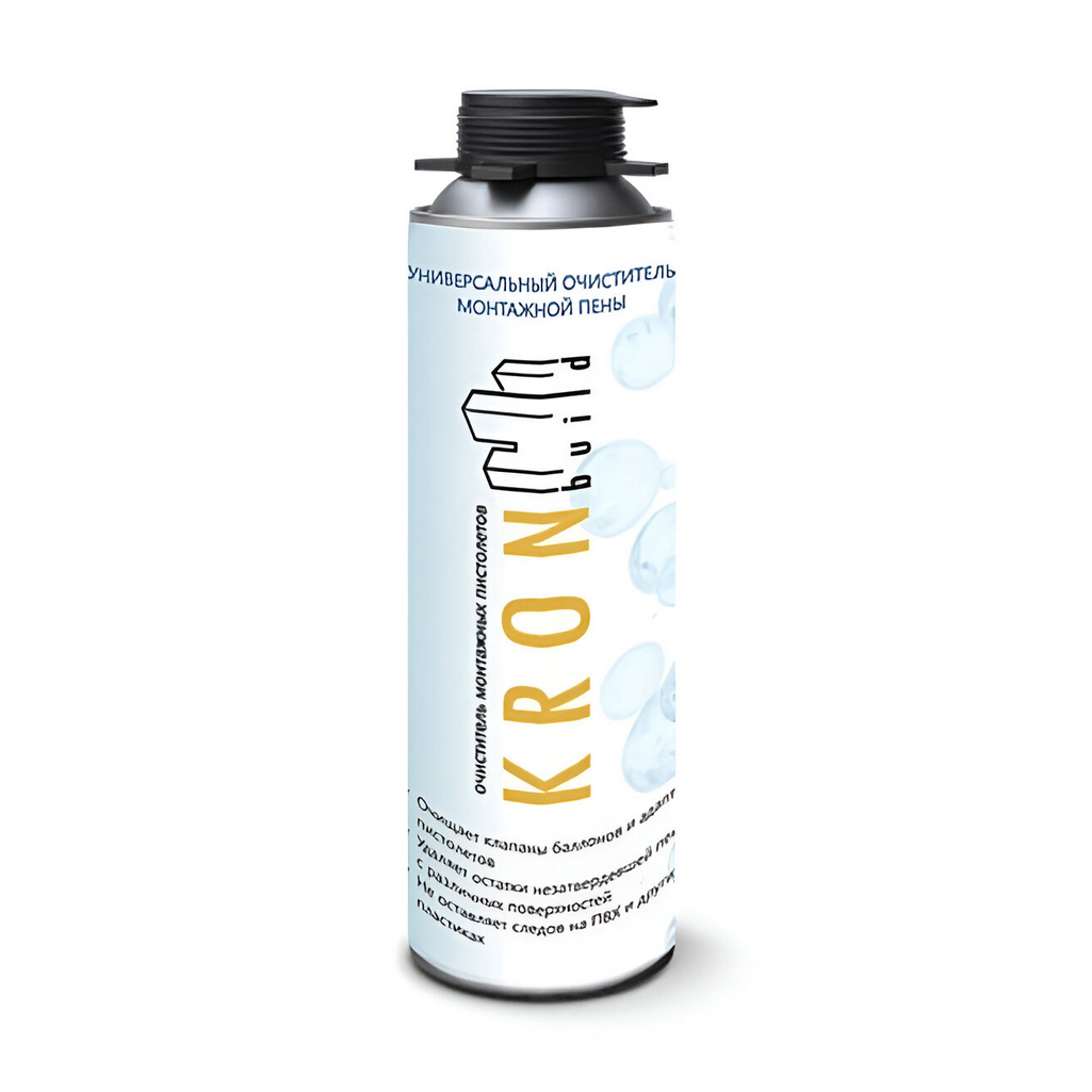 Очиститель монтажной пены KRONbuild для дерева, стекла и пластика, 350 мл предназначен для эффективной очистки загрязнений как монтажного пистолета, так и различных поверхностей, таких как дерево, стекло и пластик. Этот продукт от известного производителя Kronbuild, отличающийся высокой надежностью, произведен в России и обладает всесезонным применением.