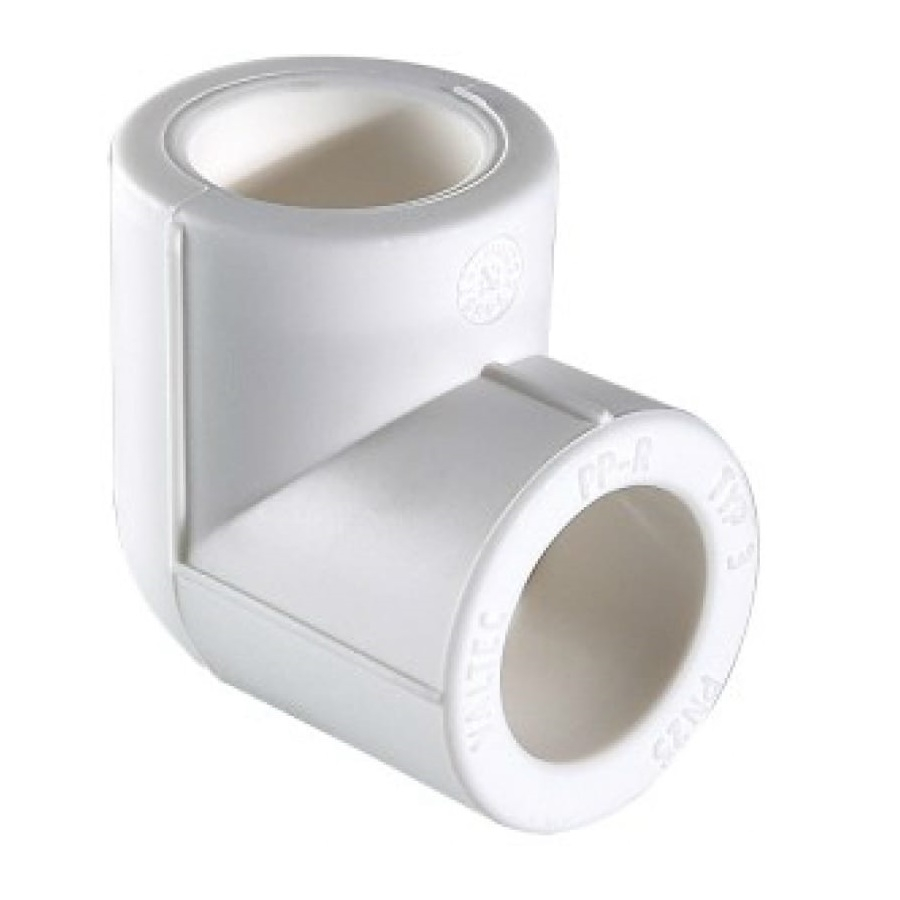 Полипропиленовое колено под углом 90 градусов - соединительный элемент для полипропиленовых трубопроводов холодного и горячего водоснабжения, используемый в случае необходимости изменить направление прокладки трубопровода с поворотом на 90 градусов или при обходе прямых углов.