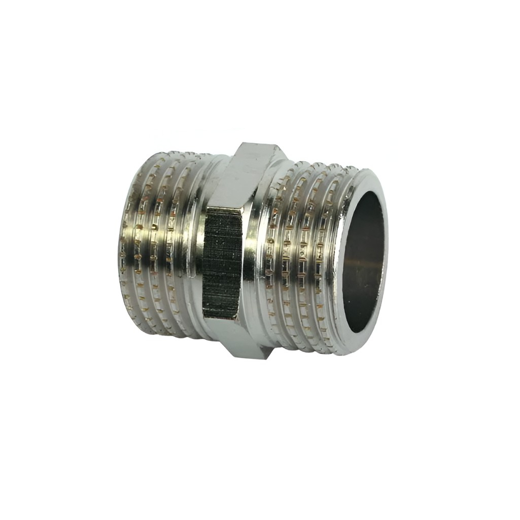 Ниппель для труб, Elsen 2"-2", НР-НР, резьбовой, латунь никелированная является важным элементом в системах водоснабжения и отопления, обеспечивая надежное и герметичное соединение труб. Изготовленный из высококачественной латуни, этот ниппель гарантирует долговечность и устойчивость к коррозии, что делает его надежным выбором для различных инженерных систем. Он предназначен для соединения двух труб с наружной резьбой, обеспечивая стабильную и эффективную работу всей системы.