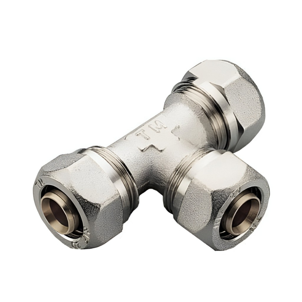Описание тройника обжимного, равнопроходного, 16х16х16 мм, с накидной гайкой, латунь