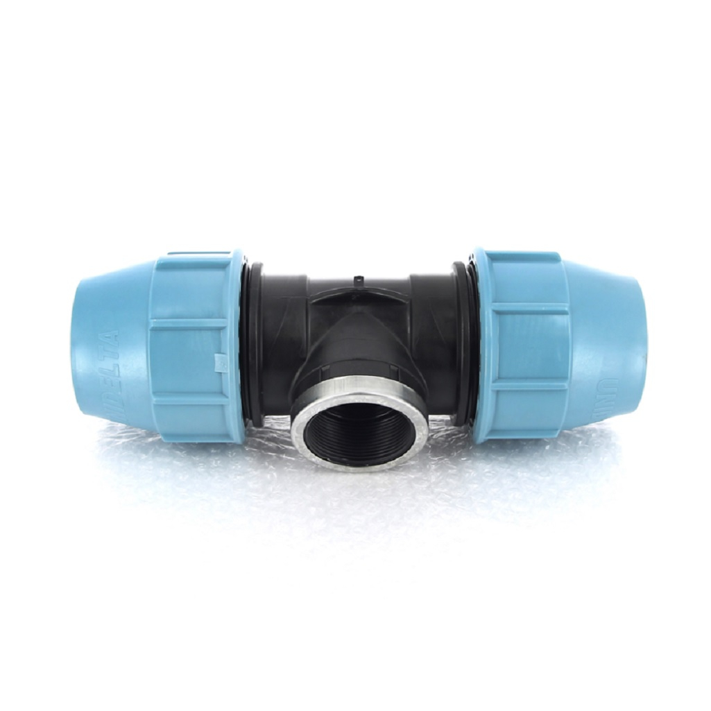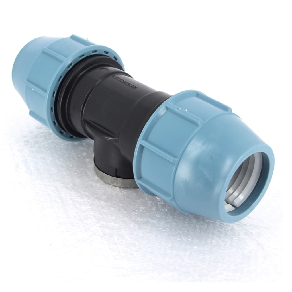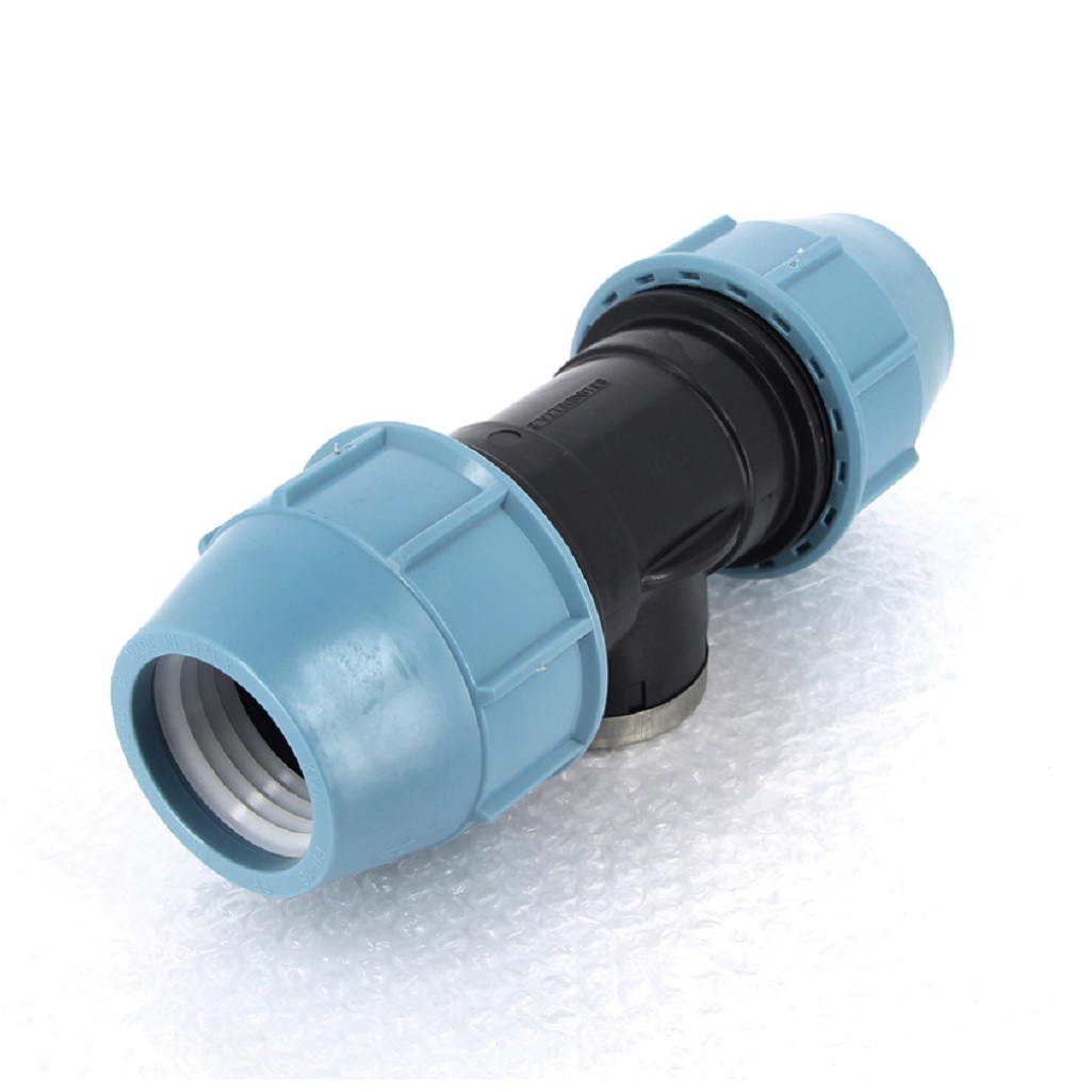 Тройник ПНД 63х2"ВР, Диаметр присоединения - 63 мм, для систем водоснабжения используют при переходе от обжимной части к резьбовому соединению труб ПНД, когда нужно сделать ответвление при монтаже систем водоснабжения. Тройник предназначен для транспортирования воды с температурой до 40°С в системах хозяйственно-питьевого водоснабжения, а также для транспортирования других жидких сред. Толщина стенки в любом месте фитинга рассчитана на максимальное рабочее давление. Компрессионный элемент имеет специальный профиль внутренней поверхности, который предотвращает выпадение полиэтиленовой трубы из корпуса фитинга внутренним давлением воды.