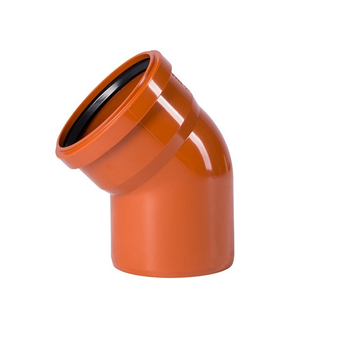 Отвод D200 х 45°, красный для канализации имеет малый вес, что позволяет просто и без усилий работать с ними.