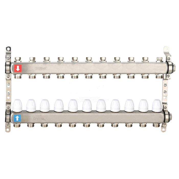Коллектор Gappo G428.11 регулируемый с запорными клапанами, 11 выходов