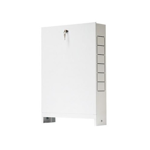 Шкаф выполнен из стали, окрашен порошковой краской RAL 9016 с предварительным нанесением фосфатной пленки для придания антикоррозионных свойств изделию. Предназначен для наружного монтажа в системах отопления и водоснабжения.