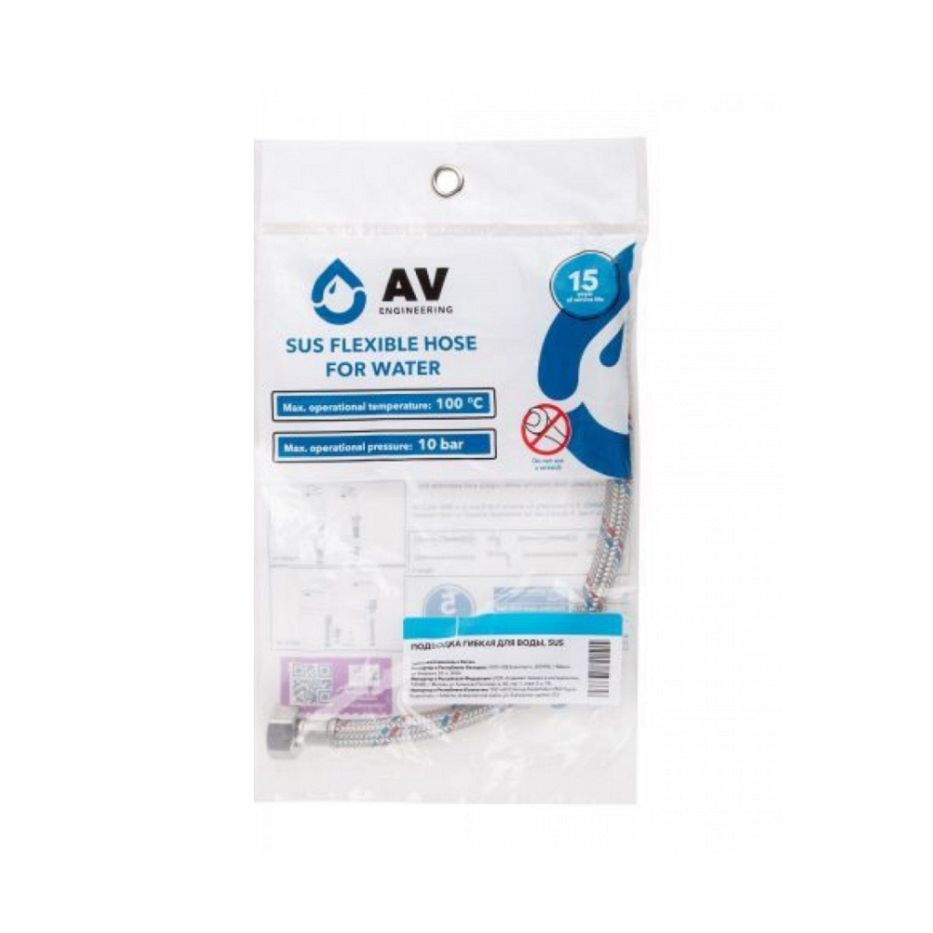 Описание подводки для воды AV Engineering SUS 1/2" AVE20130, длина 30 см, резьба гайка-штуцер