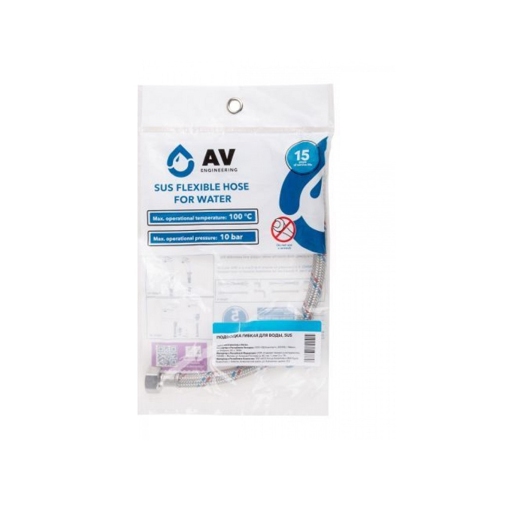 Технические характеристики подводки для воды AV Engineering SUS 3/4" AVE204100, длина 100 см, резьба гайка-гайка