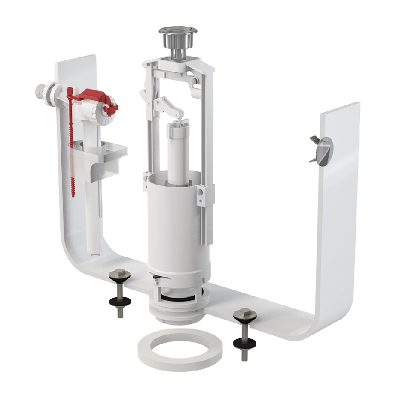 Арматура для унитаза Alcaplast с боковой подводкой, пластиковой резьбой 1/2", возможностью регулирования слива воды и стоп-кнопкой. Подходит для керамических бачков.