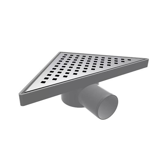Трап для душа Nova Plumbing Solution 5023 треугольный d50, 20*20, выход боковой предназначен для приема и отведения в канализационную сеть сточных вод с поверхности пола. Изготовлен из нержавеющей стали и пластика, устанавливается в жилых, общественных и производственных зданиях, тип монтажа - встраиваемый. Выход боковой, диаметр 50 мм, размер 200х200х280х20 мм.