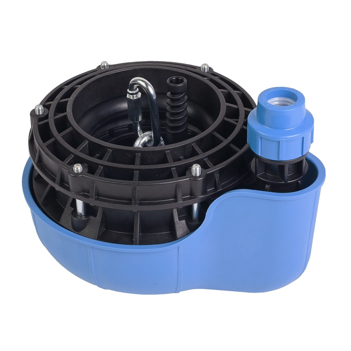 Крышка скважины КС 110-133 Джилекс для обустройства скважин в тех случаях, когда напорная труба от насоса выведена радиально ниже уровня среза обсадной трубы не менее чем на 200 мм, для того, чтобы герметизировать срез обсадной трубы скважины, обеспечить герметичный ввод и соединение электрокабеля насоса круглого сечения с наружным диаметром оболочки от 7 мм до 11 мм, с количеством проводников до 4-х, с сечением проводников до 2.5 мм², содержит проушину для подвеса насоса и дополнительную съемную заглушку для крепления шнура сливного клапана.