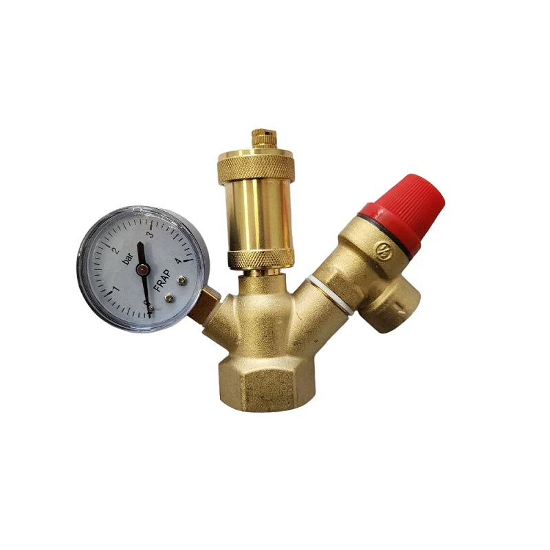 Группа безопасности котла Frap F286.06 ВР компактная 1"х3 бар, латунь - это группа безопасности котла для предотвращения и контроля аварийных ситуаций, которые могут быть связаны с закипанием теплоносителя в системе котла. Радиальный манометр с наружной резьбой помогает визуально контролировать давление воды. Автоматический воздухоотводчик удаляет воздух во время заполнения системы и котла теплоносителем.