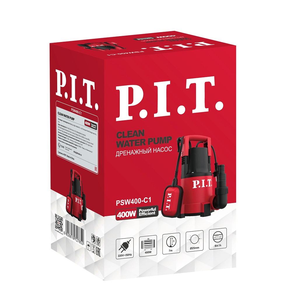 - Насос дренажный электрич. P.I.T. PSW400-C1 (400Вт, чистая вода, напор 7м, 133л/мин, удар. пластик)