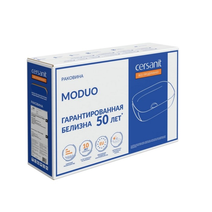 Раковина накладная Moduo 50 Squre на столешницу, для мебели Runo подходит для накладного монтажа на столешницу и отлично сочетается с тумбами для санузлов из разных коллекций Cersanit. Модель компактна и обеспечивает много места для умывальных принадлежностей, которые можно разместить на столешнице.