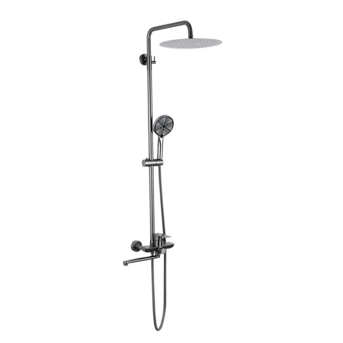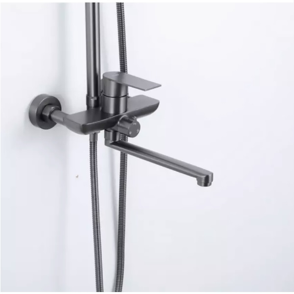 Душевая система Frap F24806-9, оружейная сталь с поворотным изливом выполнена из нержавеющей стали. Цвет душевой системы - оружейная сталь. Имеет функции с тропическим душем, с ручным душем, с регулировкой по высоте. Стилистика дизайна - современный стиль. Стандарт подводки - 1/2.