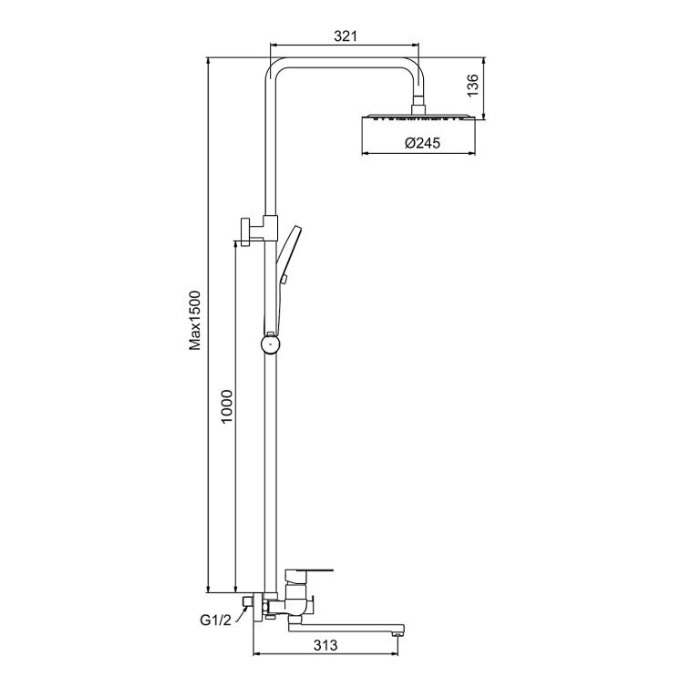 стойка, лейка, шланг для душа, смеситель, держатель, верхний душ