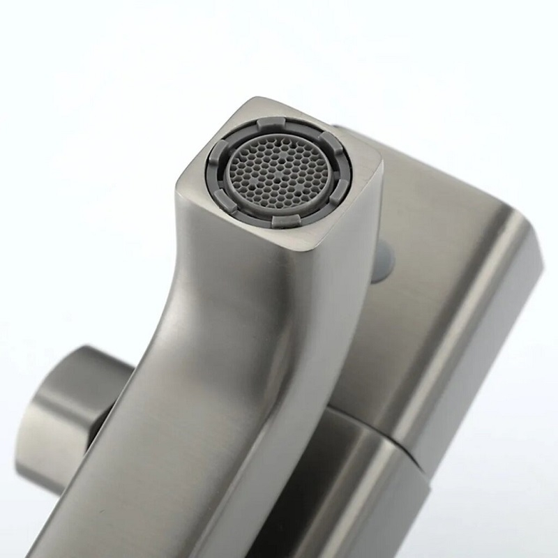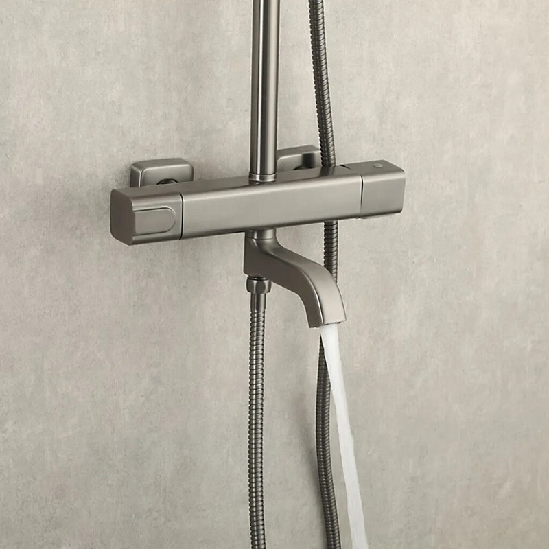 Душевая система с термостатом Gappo G2491-9 выполнена в цвете оружейная сталь. Имеет смеситель с термостатом, который изготовлен из латуни, а верхний душ и ручная лейка из ABS-пластика с системой легкой очистки, поворотный излив является переключателем на душевую лейку.