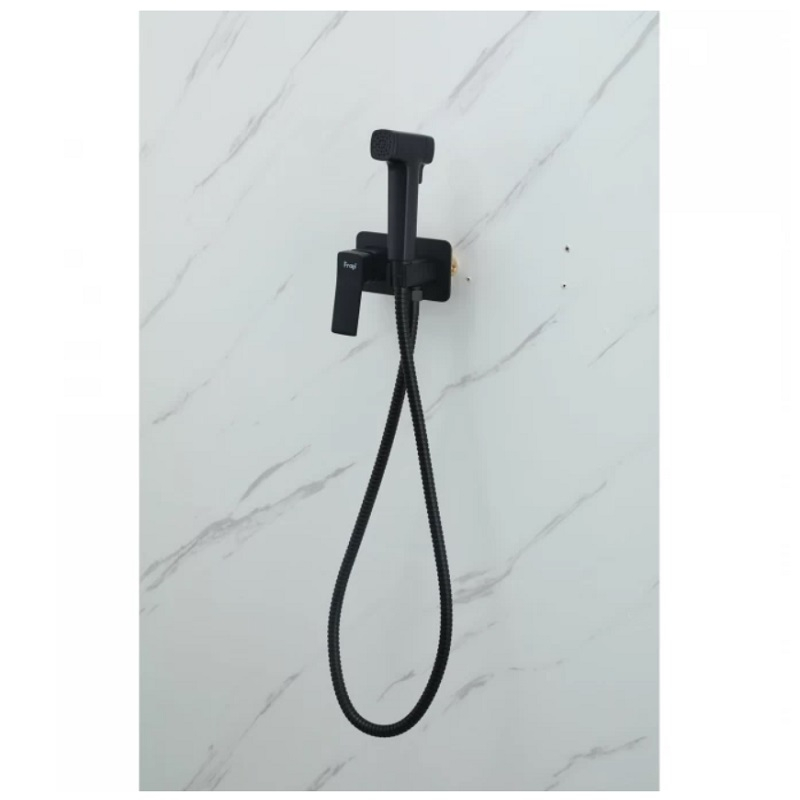Смеситель с гигиеническим душем Frap F2084-6 черный - это смеситель с гигиеническим душем с однорычажным управлением для регулировки напора воды. Смеситель для санузла с гигиенической лейкой может монтироваться внутрь стены, для того чтобы скрыть функциональные элементы. Основной материал корпуса - латунь, это проверенный и надежный материал, который обеспечивает идеальное напыление покрытия. Квадратная форма дизайна смесителя и душевой лейки делает прибор оригинальным и эксклюзивным. Смеситель для биде подходит и для кухни или для ванной комнаты, которые имеют оформление интерьера в необычном стиле. Модель без излива.