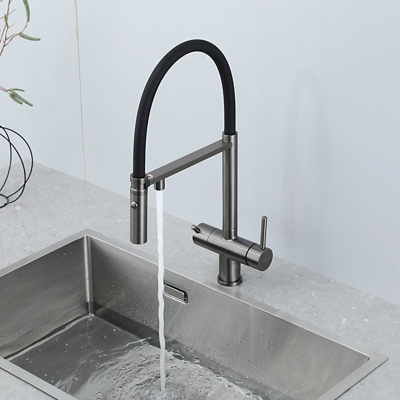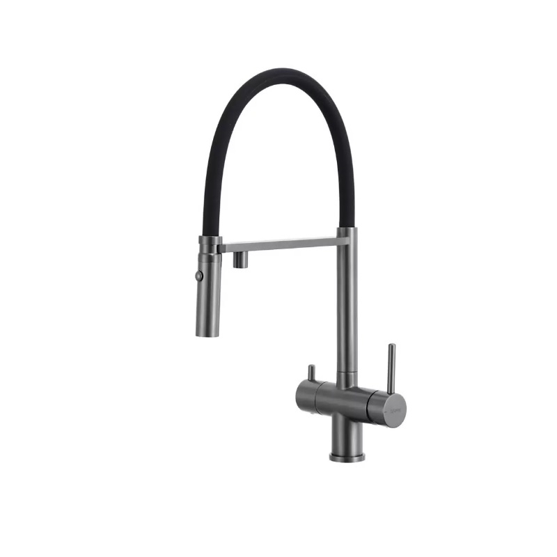 Смеситель для кухни Gappo G4397-89 гибкий излив, встроенный фильтр для питьевой воды, оружейная сталь