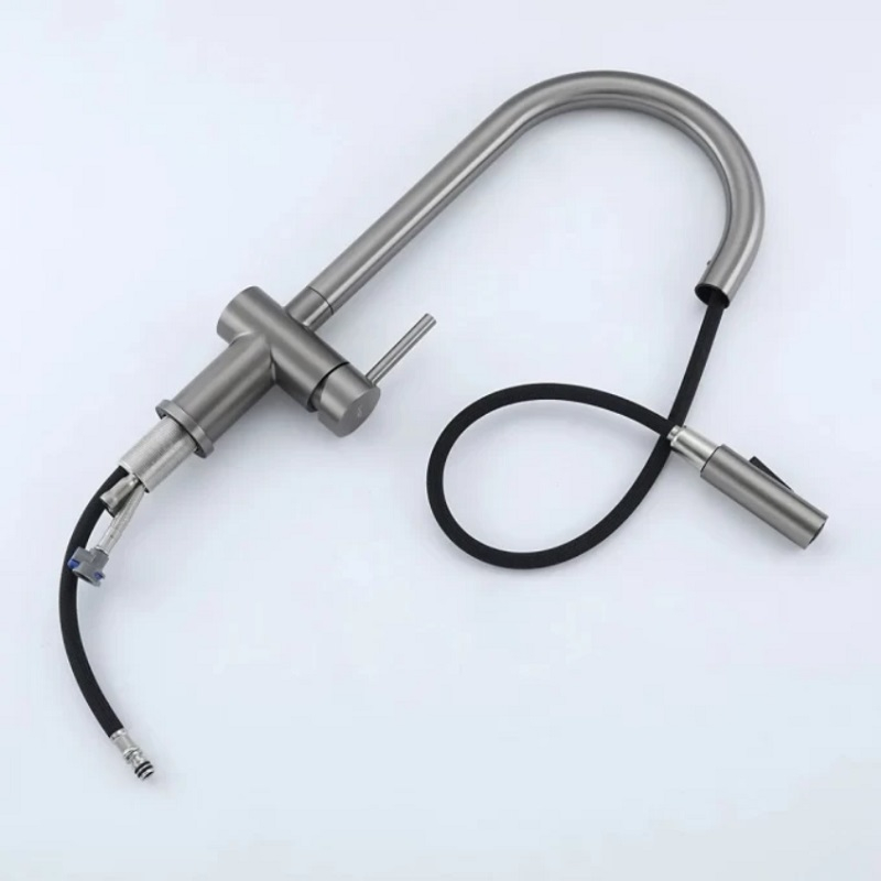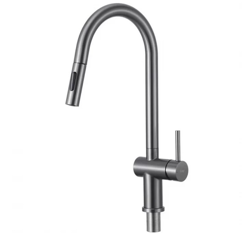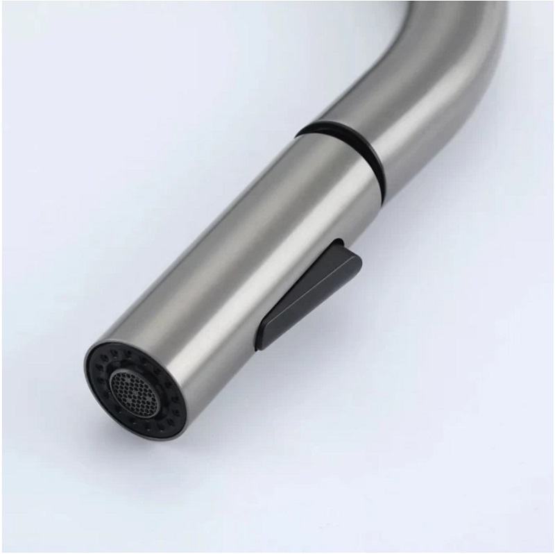 Смеситель для кухни Frap F60807-9 оружейная сталь однорычажный с выдвижным изливом – модель из нержавеющей стали в цвете оружейная сталь. Сочетает в себе стильный дизайн и удобство в использовании, идеально подойдет для современной кухни. В конструкции излива предусмотрен аэратор, который помогает расходовать воду более эффективно и предотвращает разбрызгивание. Смеситель оснащён керамическим картриджем, который идеально подходит для ежедневного использования в качестве запорного клапана. При изготовлении смесителя используются только высококачественные материалы, что обеспечивает его долговечность. Благодаря выдвижной лейке, можно легко наполнять большие ёмкости, мыть посуду или раковину. Для настройки температуры и напора воды достаточно повернуть рычаг в нужном направлении. Это позволяет экономить время и ресурсы по сравнению с использованием смесителей с двумя вентилями.