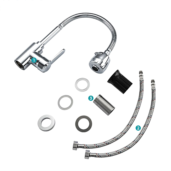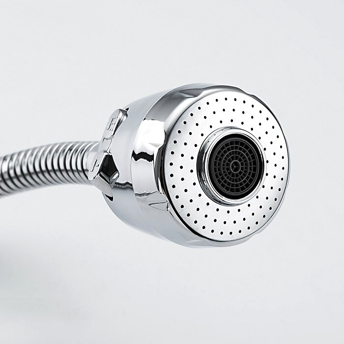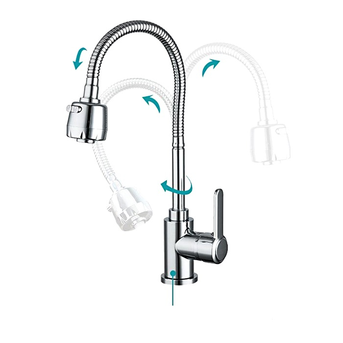 Смеситель для кухни Frud R42052-30 гибкий излив, хром с керамическим картриджем выполнен из нержавеющей стали. Аэратор в приборе позволит обеспечить равномерную подачу воды и ее относительное смягчение. Монтируется при помощи гайки. Гибкий излив значительно расширяет зону использования смесителя, благодаря этому можно мыть объемную посуду. Имеет устойчивое покрытие, которое защитит сантехнику от воздействия агрессивных моющих средств, предупреждает появления разводов и пятен. Гибкая подводка не требует замены на всем сроке эксплуатации, а также удобна при монтаже смесителя на удаленное расстояние от выводов подачи воды. Смесители Frud отличаются современным дизайном, удобной конструкцией, простотой в установке и использовании, а также сочетанием разумной цены и высокого качества. Чтобы настроить необходимую температуру и интенсивность напора, достаточно повернуть рычаг в нужное направление. Это заметно экономит время и количество потребляемых ресурсов, по сравнению с использованием двухвентильных моделей. Аэратор позволит сэкономить до 30% воды в год и обеспечит равномерный поток воды.