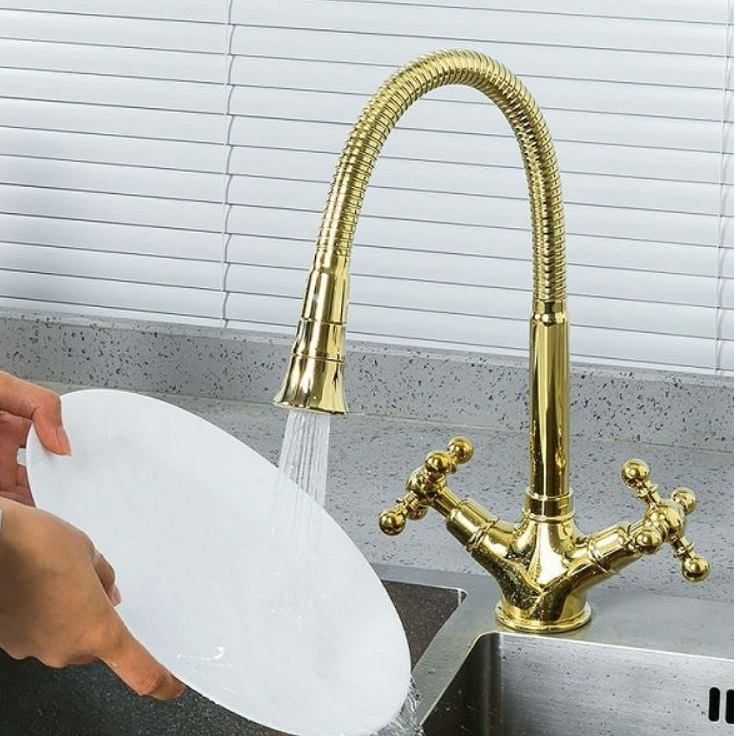 Смеситель для кухни Gappo G4089-6 гибкий излив, золото