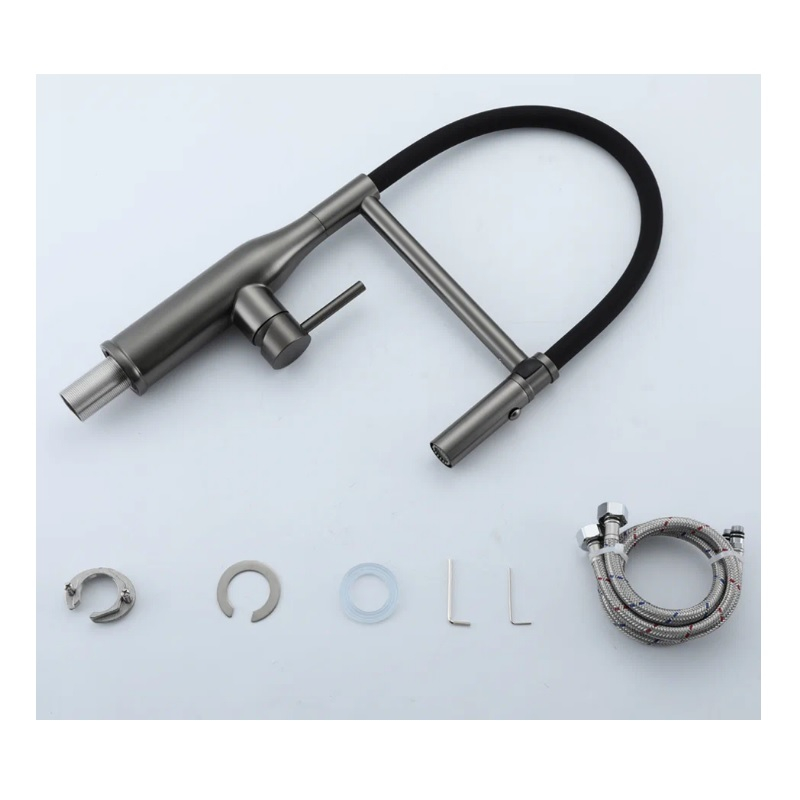 Смеситель для кухни Gappo G4098-29 гибкий излив, оружейная сталь, черный