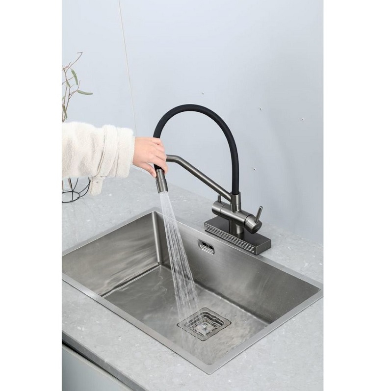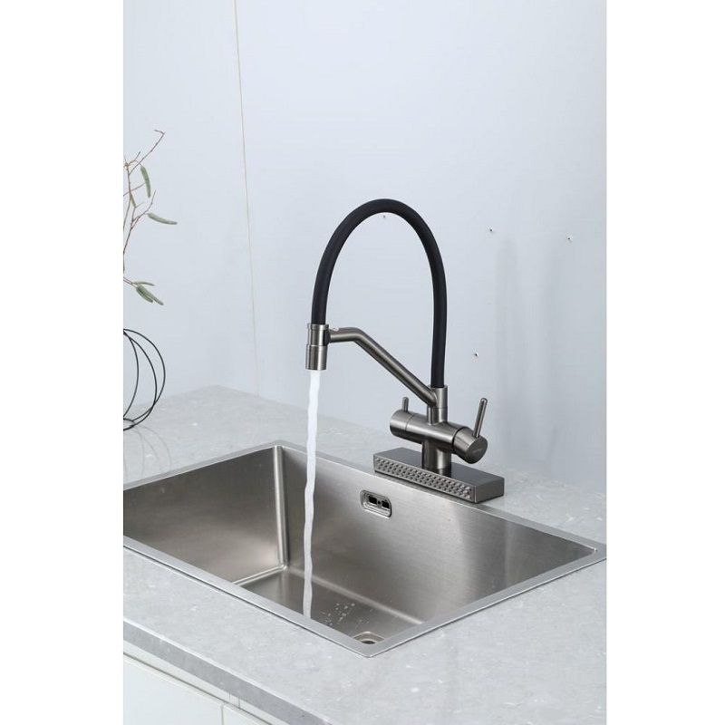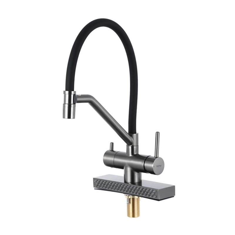 Смеситель для кухни Gappo G4098-9 гибкий излив, оружейная сталь