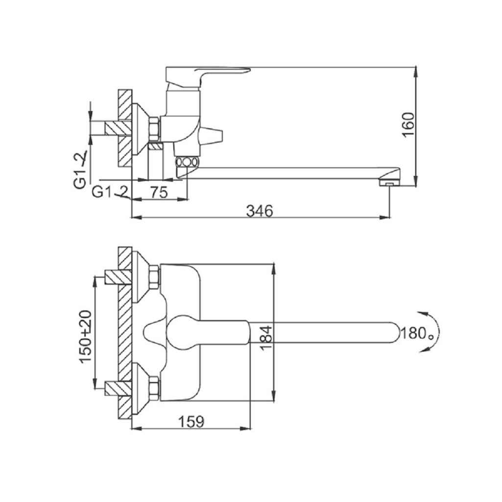Технические характеристики смесителя для ванны Frud R22106, аэратор, на эксцентриках, на стену, хром