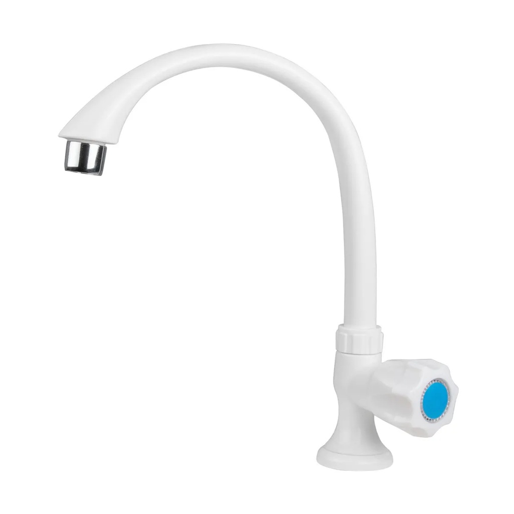 Смеситель для кухни AV Engineering AVZAP-P20, пластик, белый - это практичное решение для современной кухни, сочетающее в себе функциональность и стильный дизайн. Благодаря высокому изливу, этот моно кран позволяет легко наполнять большие кастрюли и ведра, что особенно актуально для любителей готовить. Этот смеситель станет незаменимым помощником в любой кухне. Благодаря продуманной конструкции и качественным материалам, смеситель обеспечивает комфортное использование и длительный срок службы. Смеситель оснащен системой аэрации, которая делает поток воды более мягким и экономичным.