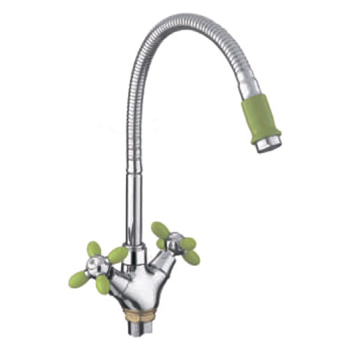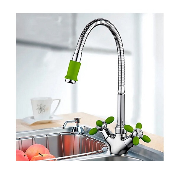 Великолепные двухвентильные смесители для кухни Frud R43127-6 зеленый/хром суперсовременного дизайна из коллекции Frud R127 станут настоящим украшением для кухни. Яркие вставки актуальных зеленого, оранжевого, белого и красных цветов, найдут свое почетное место в интерьере, оформленном в любом стиле. Широкий диапазон поворота излива позволит вымыть самую объемную посуду. Гибкий излив значительно расширяет зону использования смесителя, благодаря этому можно мыть объемную посуду. Имеет устойчивое покрытие, которое защитит сантехнику от воздействия агрессивных моющих средств, предупреждает появления разводов и пятен. Гибкая подводка не требует замены на всем сроке эксплуатации, а также удобна при монтаже смесителя на удаленное расстояние от выводов подачи воды.