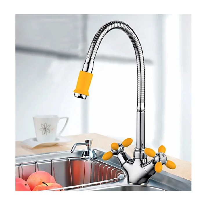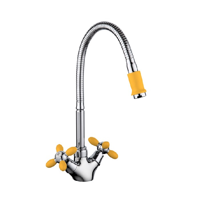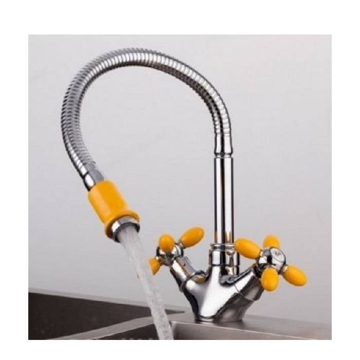 Великолепные двухвентильные смесители для кухни Frud R43127-9 желтый/хром суперсовременного дизайна из коллекции Frud R127 станут настоящим украшением для кухни. Широкий диапазон поворота излива позволит вымыть самую объемную посуду. Гибкий излив значительно расширяет зону использования смесителя, благодаря этому можно мыть объемную посуду. Имеет устойчивое покрытие, которое защитит сантехнику от воздействия агрессивных моющих средств, предупреждает появления разводов и пятен. Гибкая подводка не требует замены на всем сроке эксплуатации, а также удобна при монтаже смесителя на удаленное расстояние от выводов подачи воды. Смесители Frud отличаются современным дизайном, удобной конструкцией, простотой в установке и использовании, а также сочетанием разумной цены и высокого качества. Чтобы настроить температуру воды времени понадобится больше, чем с однорычажным смесителем, но результат будет более точным. Благодаря этому вода расходуется экономней, что важно, если в квартире установлен счетчик расхода воды. А аэратор позволит сэкономить до 30% воды в год и обеспечит равномерный поток воды.