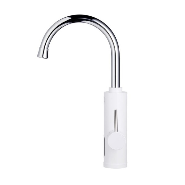 Водонагреватель проточный Royal Thermo Quick Tap, белый, на раковину, 3.3 кВт обеспечивает горячей водой 365 дней в году. Базовый белый цвет помогает прибору стать органичной частью любого интерьера. Привычная регулировка температуры и напора воды делает эксплуатацию максимально простой и удобной. Использование нагревательного элемента из нержавеющей стали и корпуса из прочного пластика продлевает срок службы прибора. Основное преимущество водонагревателя проточный Royal Thermo Quick Tap – мгновенный нагрев воды до комфортной температуры с первых секунд открытия крана. Мощный ТЭН обеспечивает мощность прибора на уровне 3,3 кВт, что позволяет получить до 1,48 л воды в минуту. Использование нагревательного элемента из нержавеющей стали и корпуса из прочного пластика продлевает срок службы прибора.