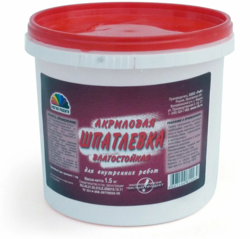 Описание шпатлёвки Радуга акриловой влагостойкой 1,5 кг