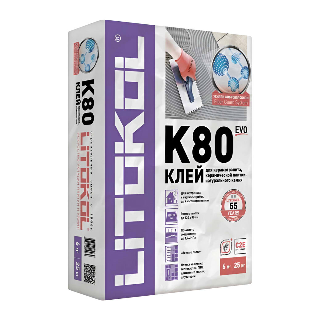 Клеевая смесь Litokol К-80 цементная, для плитки, керамогранита и камня, 25кг — это высококачественный цементный состав, предназначенный для укладки различных видов плитки и натурального камня. Подходит для керамогранита, керамической плитки, клинкера и натурального камня с устойчивой структурой размером до 90х90 см.