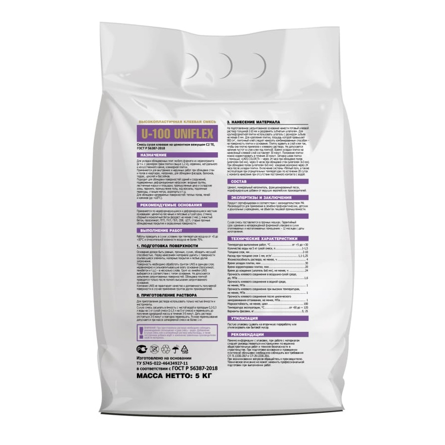 - Клеевая смесь UNIS UNIFLEX U-100 высокопластичная 5кг
