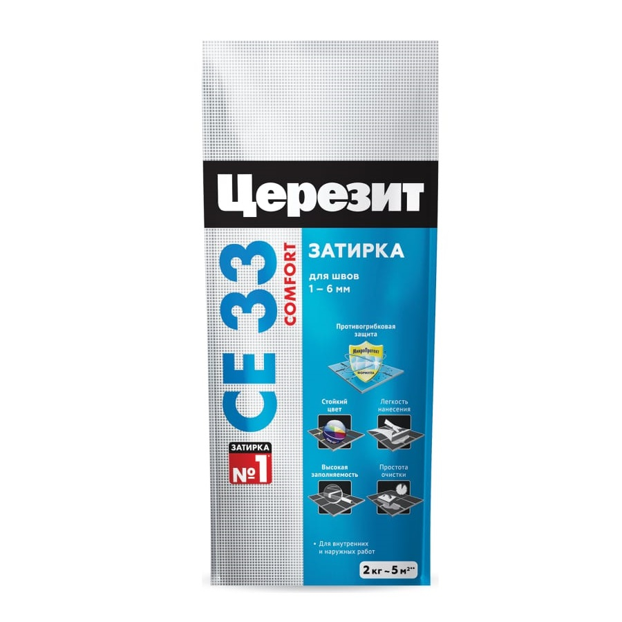 Затирка Ceresit CE-33 №13 предназначена для затирки швов керамических, стеклянных и каменных облицовок. Подходит как для внутренних, так и наружных работ. Используется для стен и потолков. Затирка содержит противогрибковые добавки и компоненты, придающие дополнительную влагостойкость. Срок годности сухой смеси - 18 месяцев.
