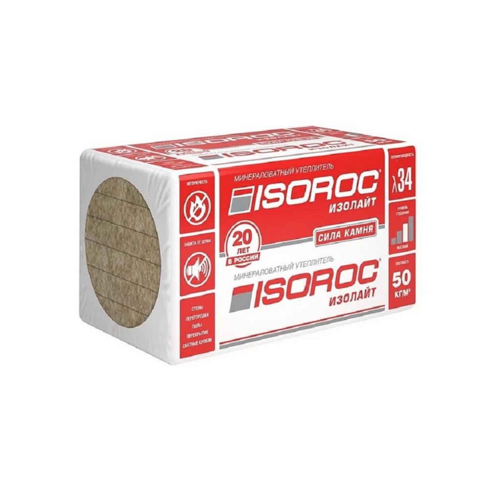 Утеплитель базальтовый Isoroc Изолайт 50х600х1000 мм, 4.8 кв.м, 8 плит