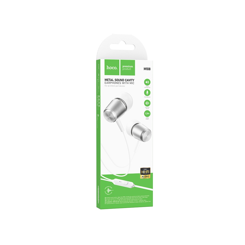Описание наушников внутриканальных Hoco М108 Jack 3.5 мм, 1.2 м, серебристые